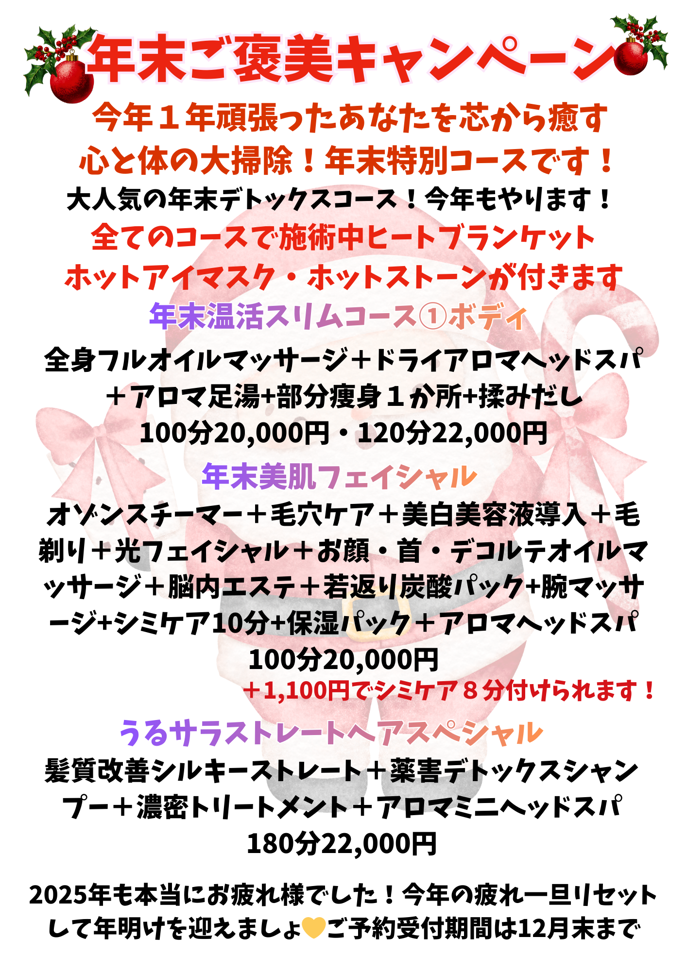 今年の疲れ一旦リセットして、元気に年明けを迎えましょ💛