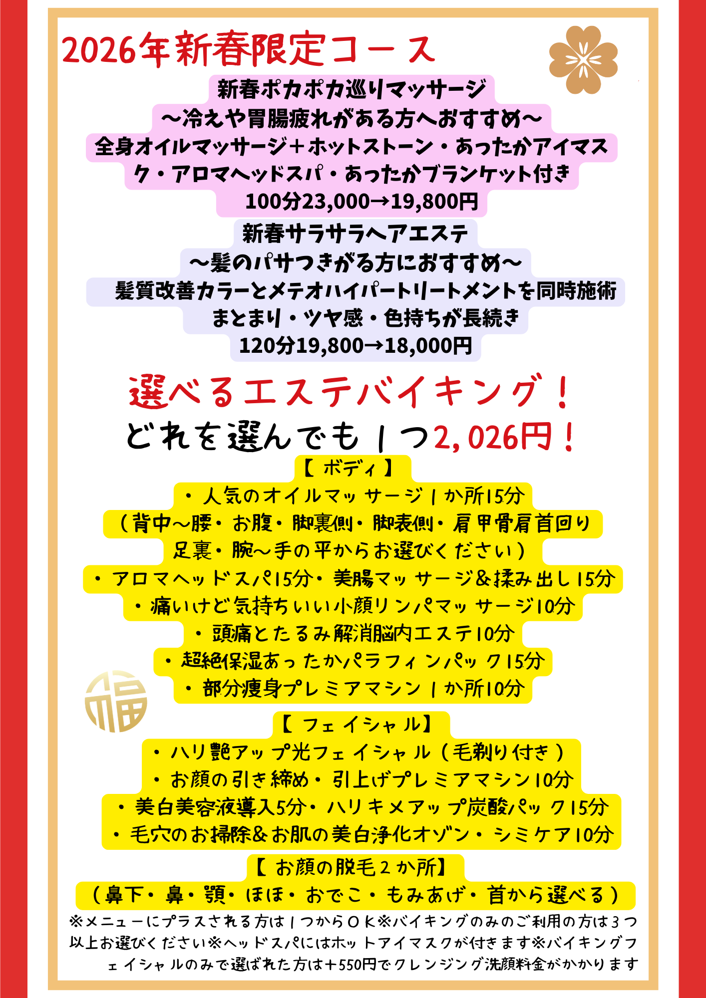 ※バイキングフェイシャルのみで選ばれた方は+550円でクレンジング洗顔料金がかかります